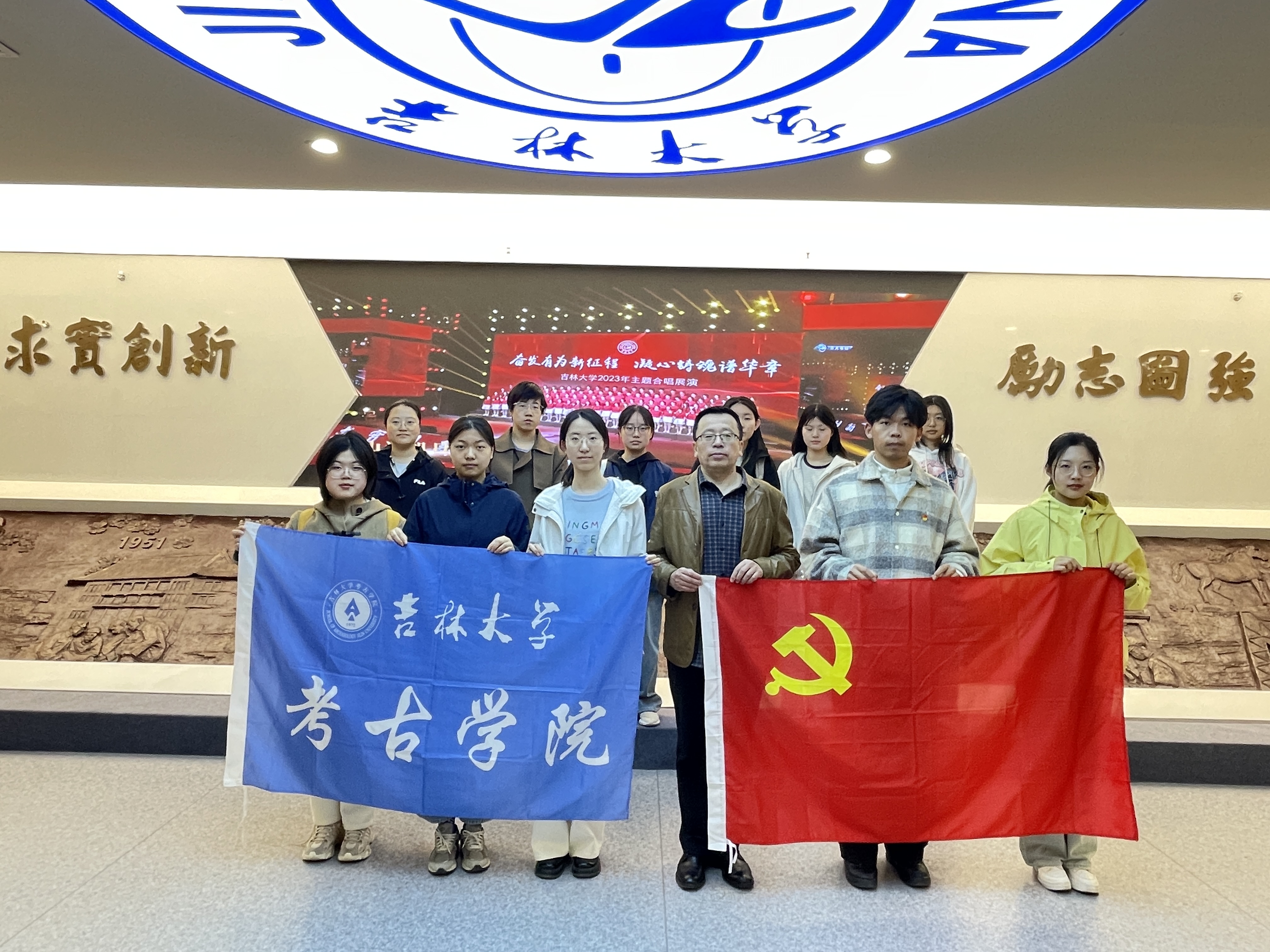 参观过程中,党员们驻足于吉大考古相关的展板前,回顾吉大考古多年来在考古领域的卓越成就和一以贯之的简朴、严谨、求真的学术精神。吉大考古人厉行勤俭节约,以实际行动诠释中央八项规定精神内涵,为本科生党支部成员带来良多启发。