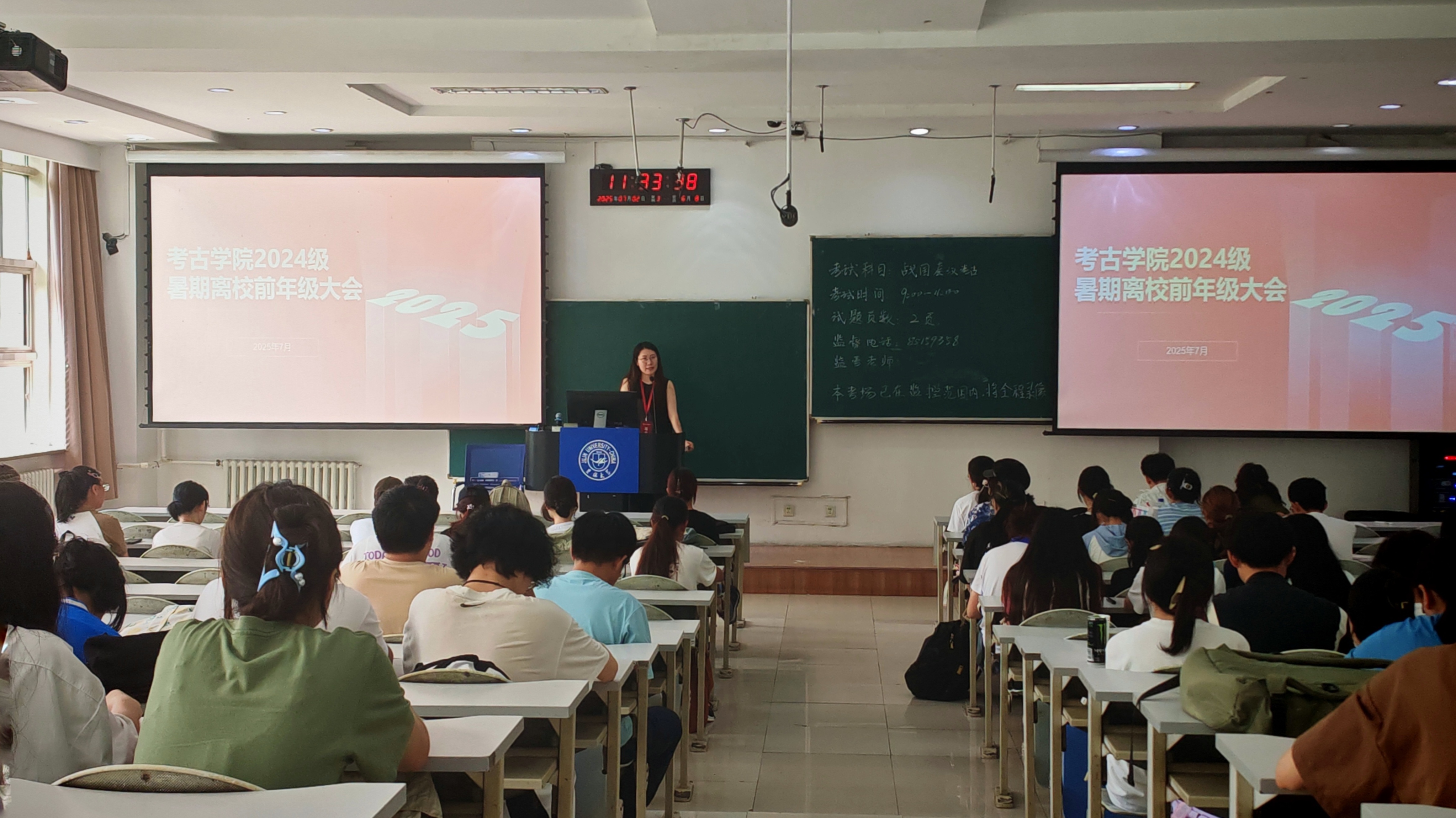 为做好大学城搬迁、暑期离校及安全教育相关工作,7月2日,考古学院2024级在第三教学楼第六阶梯教室召开暑期离校前年级大会,辅导员马嘉男老师及全体同学参会。