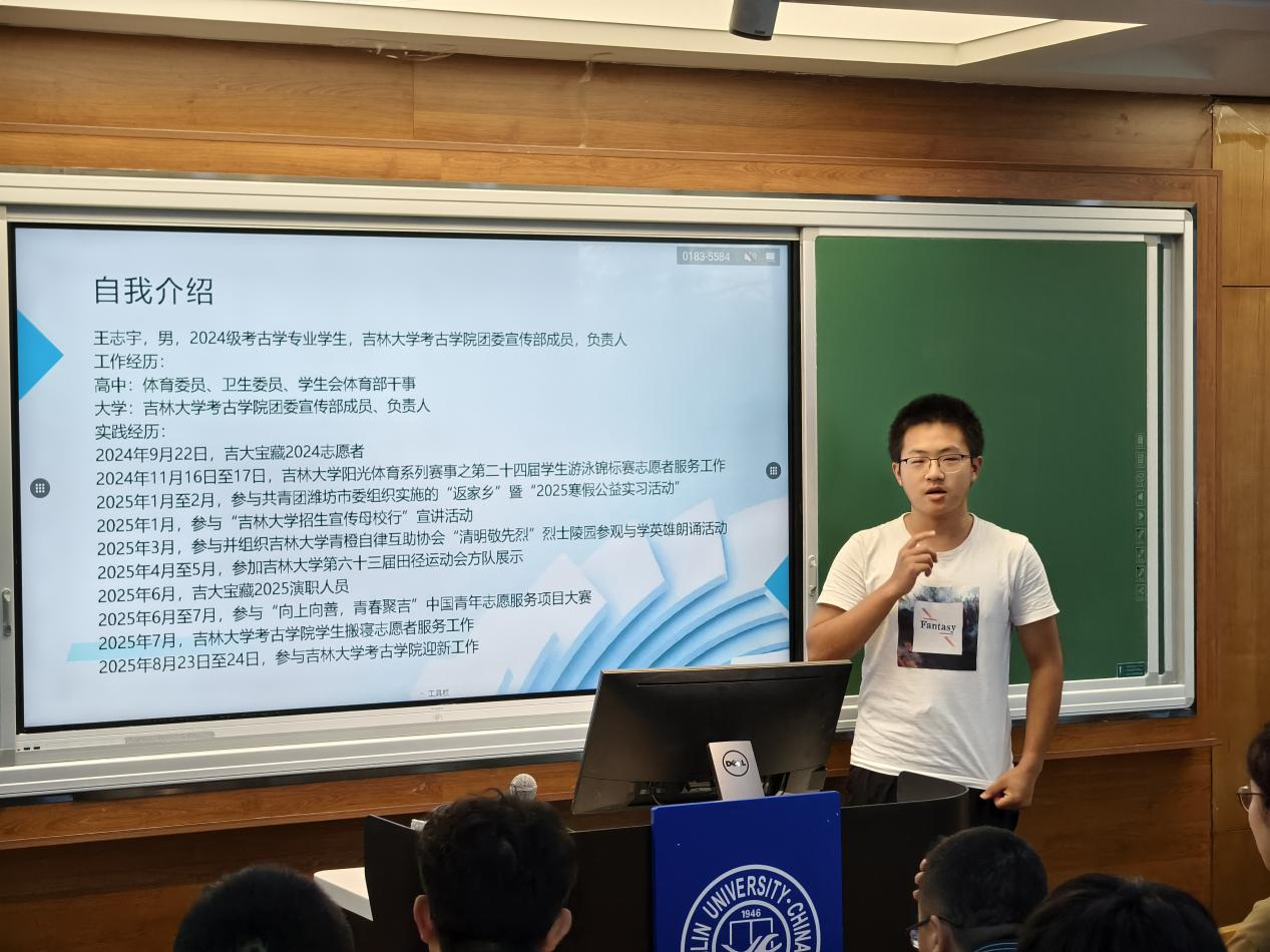 党委副书记兼副院长侯建峰老师,2024级考古班班主任赵里萌老师,2024级本科生辅导员马嘉男老师,2024级考古班、文物与博物馆班班委候选人及全体同学参与会议,会议由2024级本科生闫志璇主持。