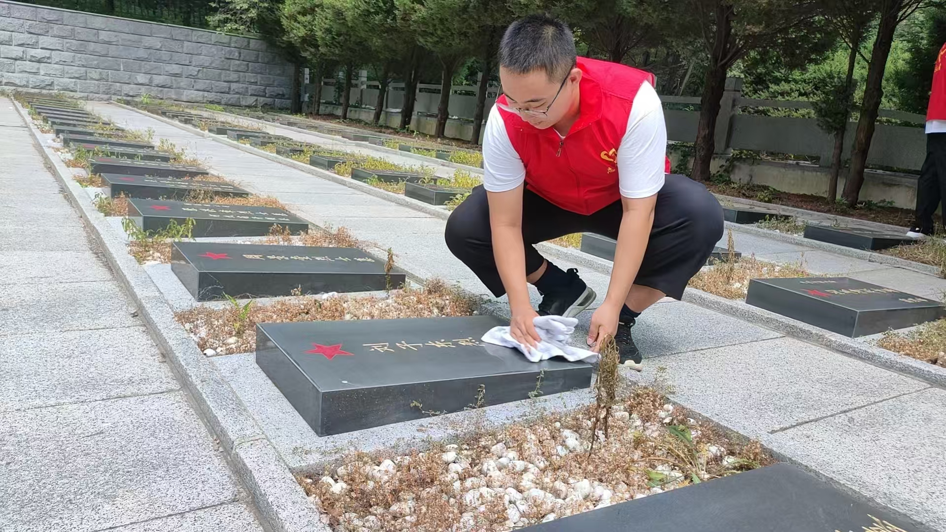 学生与社区志愿者怀着崇敬之心,一同细致擦拭墓碑浮尘、清理墓区杂草,用耐心与细心呵护英烈安息之地。此次活动不仅是对英烈的深切缅怀,更让团队成员在实践中深刻感悟了革命先辈的家国情怀。