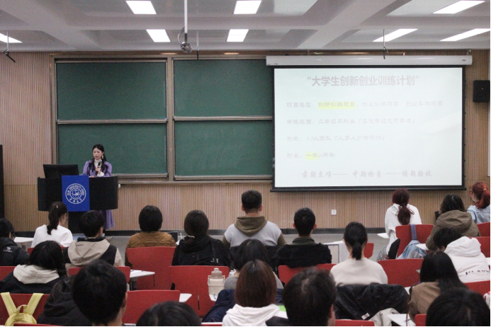 最后,李盈玉围绕项目结题阶段的流程与要求以及评优公示规则,阐释了项目收尾阶段的各项事宜与关键点;并以自身经历为引对答辩的策略模式、心理权衡等方面做了引人入胜而兼具开导性的介绍。其次,她提到了大创年会的通知时间,提醒同学留意通知、提前准备。