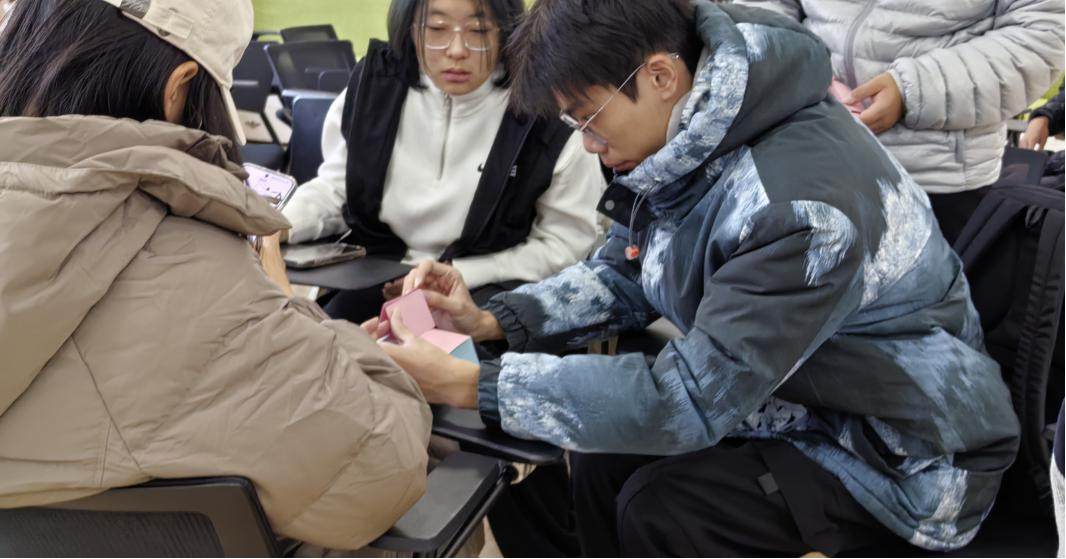 随后,同学们分成若干小组,在组内两两配对,轮流进行自我介绍。大家围绕家乡、兴趣爱好等话题展开交流,在有限的时间里传递丰富的信息。不同的故事拼凑出鲜活的个体,不仅增进了彼此的了解,更在无形中拉近了心与心的距离。