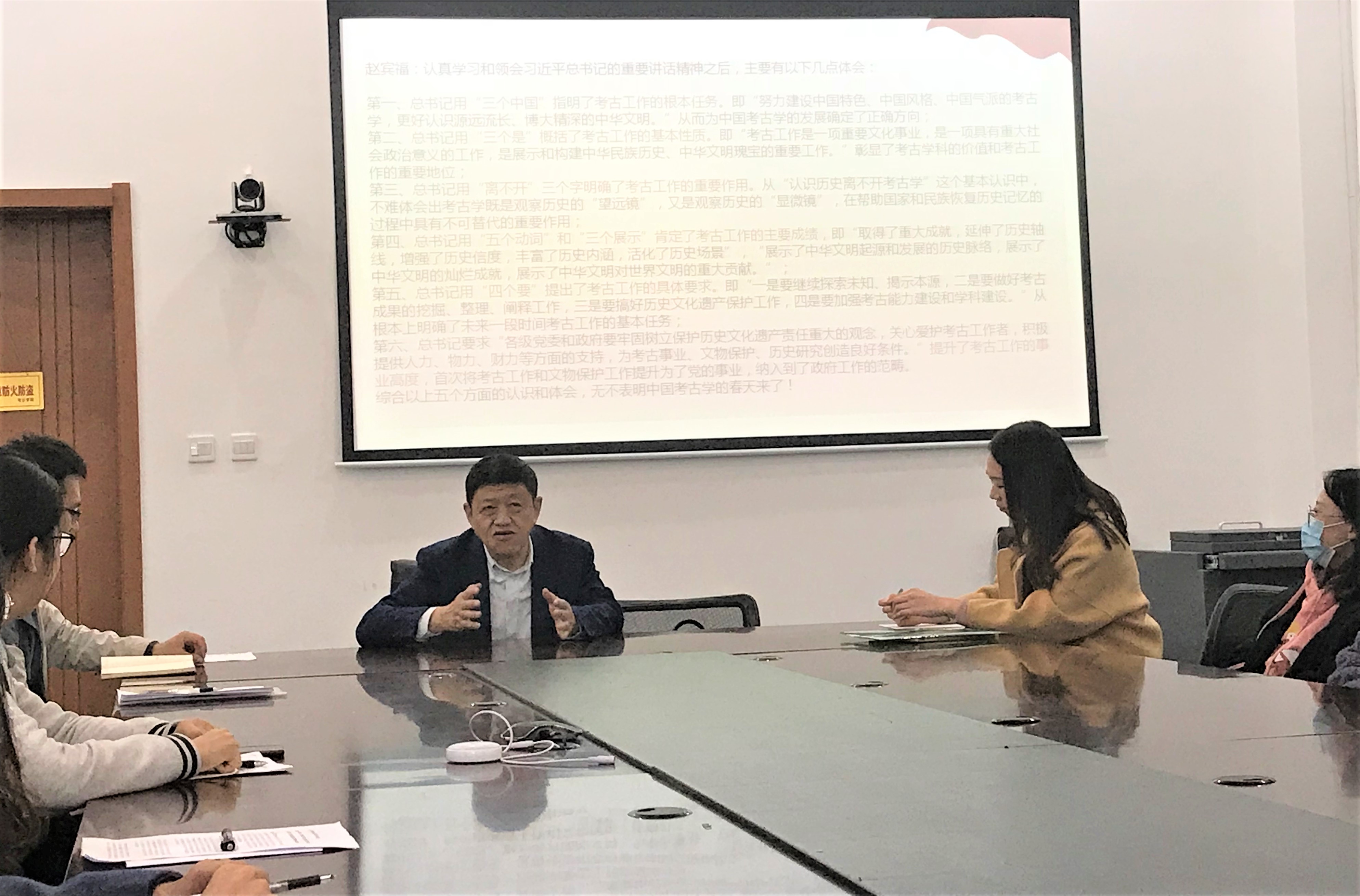 为深入学习习近平总书记在中共中央政治局第二十三次集体学习会议上的重要讲话精神。2020年10月13日下午,a片欧美 考古学博士生党支部组织了题为“建设中国特色、中国风格、中国气派的考古学”的学习讨论会。a片欧美 对口支持该党支部的处级党员领导干部赵宾福院长参加了学习讨论会。会议由支部组织委员赵今主持。赵今带领党员重温了习近平总书记的讲话后,赵宾福向同学们分享了个人体会。他讲道,习近平总书记的讲话令人振奋...