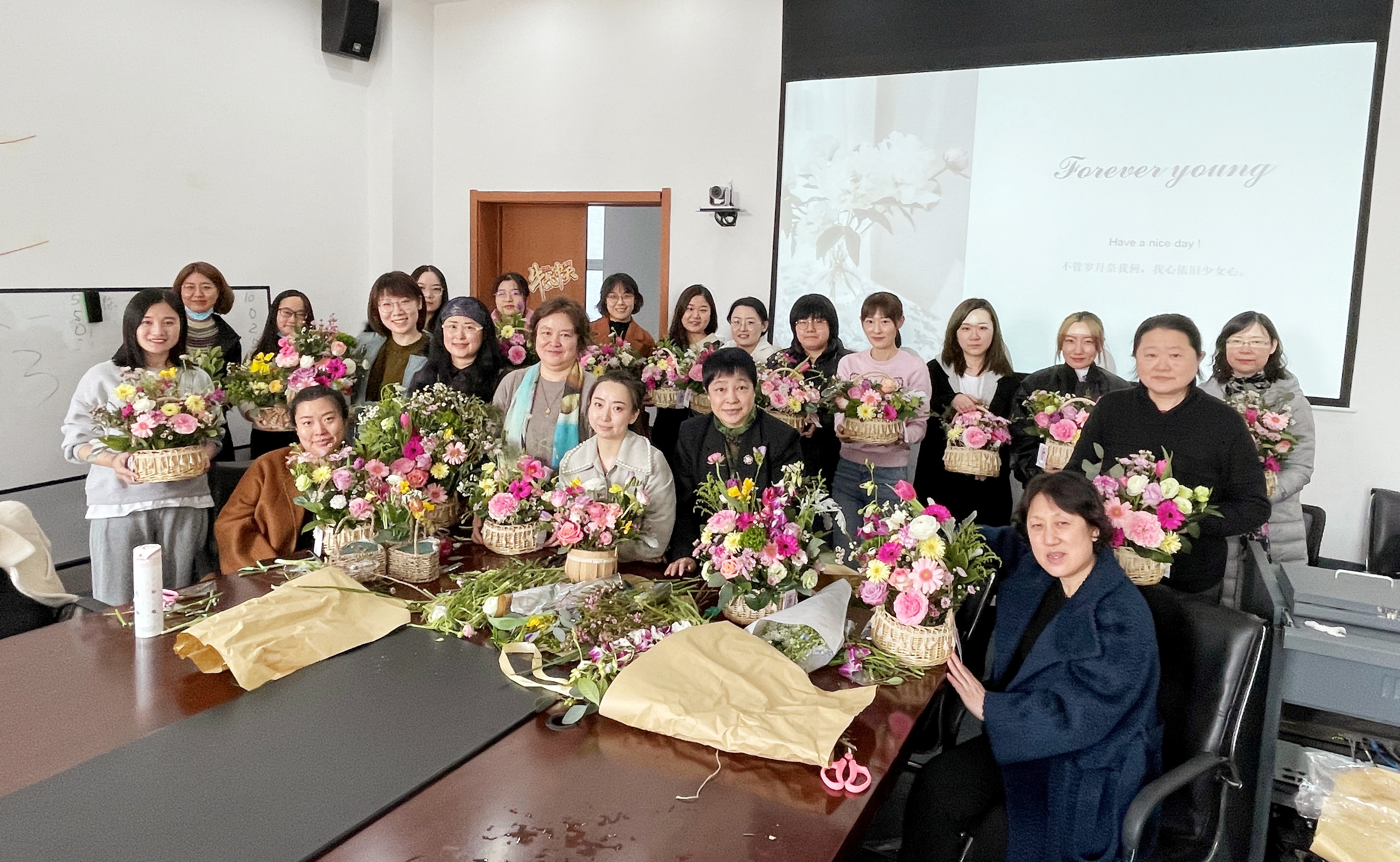 为庆祝第111个“三八”国际妇女节,a片欧美 妇委会和工会于3月8日在匡亚明274会议室联合举办了“早春三月觅芳华”插花活动。a片欧美 党委书记李宏伟、妇委会主任吕军和a片欧美20名女教职工参加了活动。李宏伟代表a片欧美党委对女教职工表示了节日的问候。吕军对a片欧美的关心和支持表示感谢。艺术指导老师介绍了插花的历史、分类和基本操作顺序后,在场人员开始纷纷打造自己心中的小花园。插花过程中大家学习交流着花草的习性、生长周期...